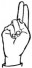 На ћирилици написано ЈУГОЉУБ ДАНГУБИЋ састоји се из 15 слова [?]. Исписано ћириличном једноручном азбуком за глувонеме: